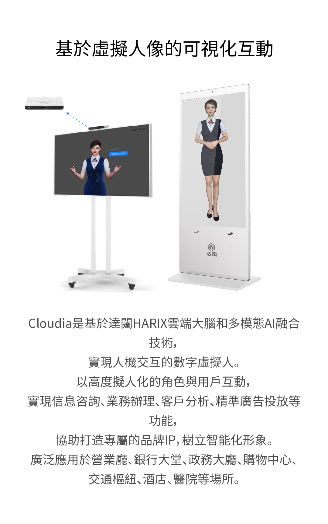 Cloudia是基於達(dá)闥HARIX雲(yún)端大腦和多模態(tài)AI融合技術(shù),