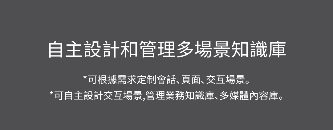 *可自主設(shè)計交互場景,管理業(yè)務(wù)知識庫、多媒體內(nèi)容庫。