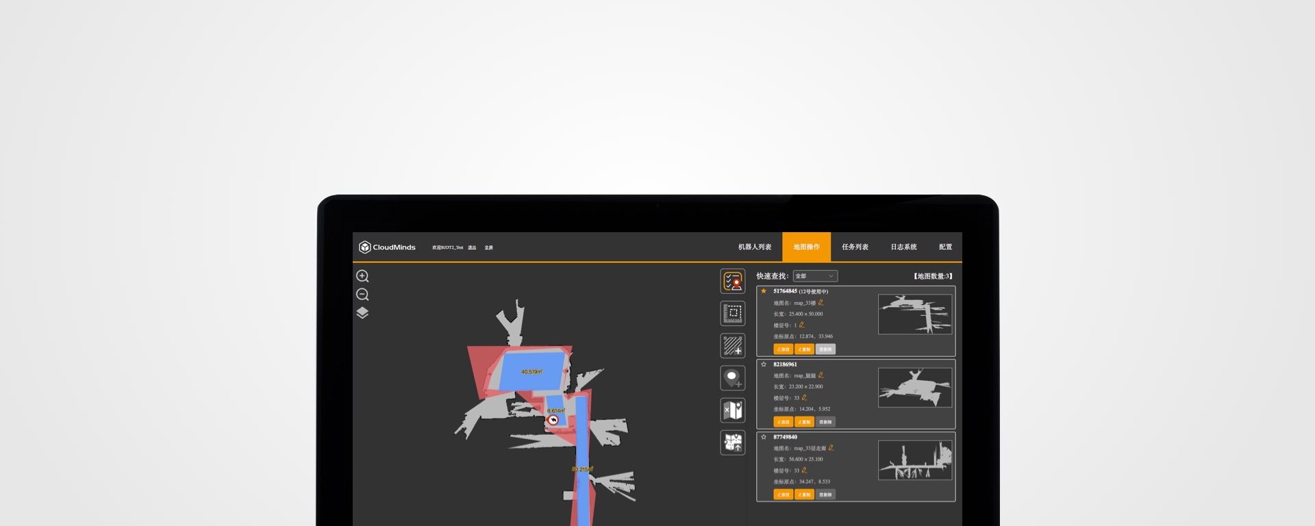 雲(yún)端進(jìn)行部署調(diào)度,多臺(tái)機(jī)器人配合工作,完成任務(wù)後自動(dòng)歸位。