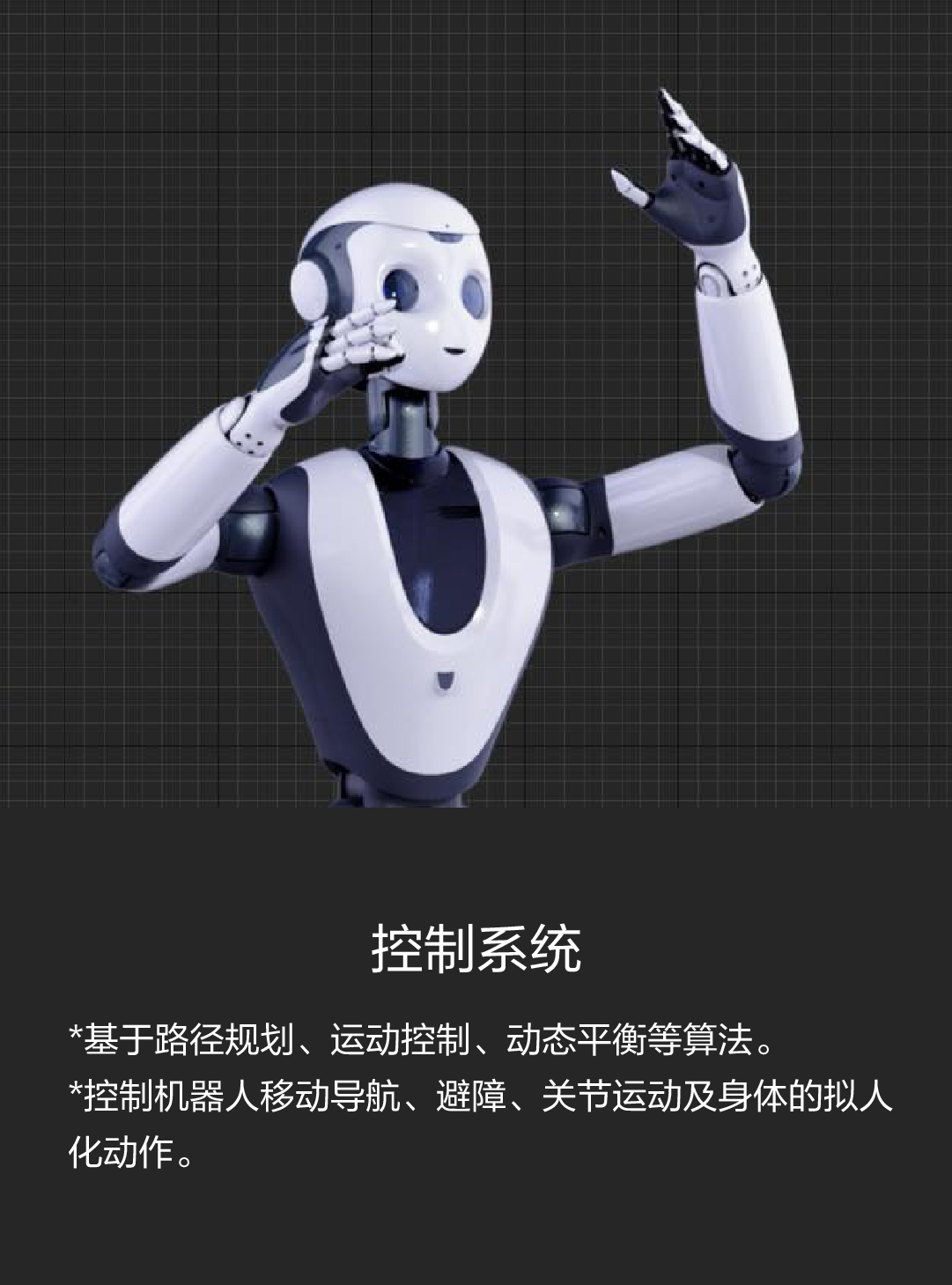 *控制機器人移動導(dǎo)航、避障、關(guān)節(jié)運動及身體的擬人化動作。